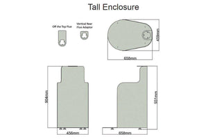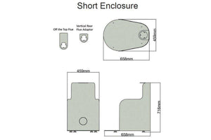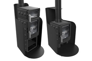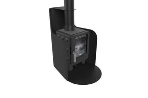 The Apple Pie stove can be housed in a choice of two different heights of non-combustible steel heat shielding enclosures (Short or Tall) which will further reduce clearance to combustible materials. This is especially useful in confined spaces as well as in non-domestic buildings such as yurts and shepherds' huts which are traditionally constructed from flammable materials. For specific minimum clearance distances please carefully check the Distance to Combustibles guide.