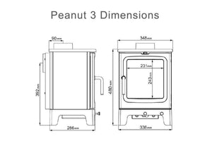 The premium quality longer lasting all-cast iron construction, which includes the firebricks, ensures that the Peanut 3 will build up considerable heat in its bodywork for later slow release and this combined with the wide 2.0 kW to 5.0kW heat output range makes it a practical heating solution for most of the year. The Fast Flame system which focuses primary air in a small area under the logs makes lighting your Peanut 3 ever so quick and easy so that you will also begin to benefit from that heat much earlier. The Peanut 3 has three separate air controls, including unusually, a push-pull control for the tertiary air supply giving you maximum control of flame height and burn rate.