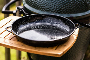 Experience the unmatched flavor and authenticity of paella cooked on the Big Green Egg, right in your own garden. The Paella Pan, with its durable enamelled surface, ensures even heat distribution, creating perfectly cooked rice dishes with that iconic golden, crispy ‘soccarat’ layer. Its versatility doesn’t stop there – it’s also ideal for risottos, shakshuka, and even caramelizing sugar for your favorite desserts.