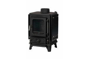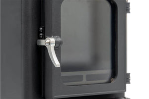 The Hobbit SE has recently had its combustion system uprated to include pre-heated tertiary air to ensure much cleaner burning that passes the critical 2022 Ecodesign emissions and minimum efficiency limits. This now means the Hobbit SE has a net efficiency of 79.4% (A) when burning wood and 81.4% (A+) when burning manufactured smokeless coal products. Everything else about the Hobbit's traditional cast iron construction with its separate ash pan compartment remains the same with just one exception: unusually there is now an additional separate control for the Tertiary air. This is located below the firebox, beside the Secondary air / airwash control and these two controls, along with the Primary air flow wheel on the door will provide you with almost-infinite control of the heat output and fuel economy. There's also a 'dust-free' external riddler for smokeless coal burning.