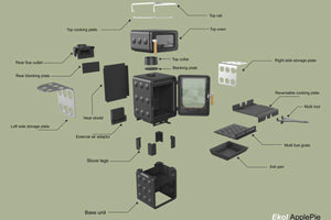 The Apple Stack is Ekol's compact Apple Core but with the 200mm high matching pedestal base / store module added and just like the Apple Core you can also add a top mounted stainless steel cook / warming plate with safety rail as well as sturdy stainless steel left or right hand side side shelves. The Apple Stack also comes with a reversible cast iron pizza shelf and griddle plate as standard. All you have to do is wait until there's a good bed of glowing embers before you add your food. Together with the above options this makes the Apple Stack a very practical solution when you need to rustle up a quick hot snack, sear a steak or slow cook a stew or casserole from scratch. A must then for garden offices, workshops, shepherd huts, yurts and canal boats. The Apple Stack's already low distances to combustible materials can be further reduced by opting for one of the two purpose-designed plate steel heat shielding enclosures – highly recommended for small confined spaces when a traditional fireplace opening is not being used.