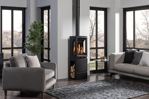 The elegant Vogue Midi T, at 776mm high, is a taller version of the basic Vogue Midi by some 137mm and features a taller firebox and tall side windows for an improved 180º view of the wonderfully realistic ceramic log fire bed and splendid long flame patterns. This makes it ideal for free-standing locations along a flat wall where you'll be able to get a great view of the fire wherever you are in the room. To create an even bigger impression the Midi T also comes in Midline (928mm high) and Highline (1260mm high) versions that feature matching cast-iron fronted log stands which can be filled with real logs for that authentic log burner look.