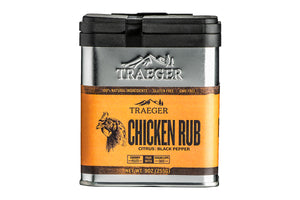 Elevate your poultry dishes with our delectable Traeger Chicken Rub. Expertly crafted with a mix of zesty citrus, rich cane sugar, and a spicy kick from black pepper and chilli powder. Whether you're roasting a chicken or grilling turkey burgers, this rub is the secret ingredient for flavourful perfection.