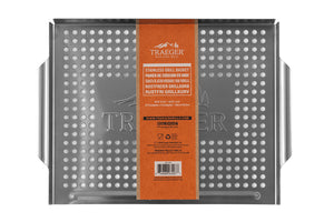 The Traeger Stainless Steel Grill Basket lets you cook veggies, shrimp, and other small items on the grill without losing food through the grates.