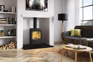 The Defra approved 4.5kW Wiking Mini 2 wood burning stove is by far The Stove Yard's best selling stove. It is available in a choice of heights with low profile plinth, low legs or high legs and, with the optional kit, can even be wall mounted, all of which have added to its popularity. The discreet Wiking Mini 2 with Short Legs version will increase the Mini 2's height by just some 44mm over the plinth version with the stocky legs providing a subtle nod to traditional stove styling which many of our customers prefer. Having said that, the Wiking Mini 2 with Short legs has clean, almost neutral contemporary lines and a really big picture window (one of the biggest on a stove of this heat output) which will ensure that it will be a wood burner that's going to look great in any fireplace setting – since most of what you'll see is flames. Again, another reason it's so sought after.