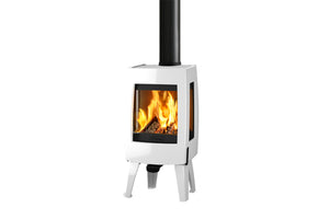 The Dovre Sense 103 Wood Burning Stove is a distinctive all-cast iron contemporary styled 5kW wood burning stove available in traditional matt black or glossy pure white enamel. With its gentle curves (there's hardly a straight line on it) and its pleasing 285mm high legs the Sense 103 is in every sense truly a designer stove. Everything that would interfere with its cool looks has been removed or minimised. For example there's no door handle as such but simply a discrete push button on the right hand side wall to open the door. The Sense 103 features a tall virtually full width window with matching side windows to provide you with a 180º view of the fire.