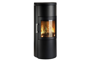 The Hwam 3520 is a tall (1260mm) contemporary styled stove with a semi-circular footprint which has a depth of just 371mm. It has two compartments with the top compartment designed to hold an optional 44kg of heat storage stones. For an additional 49kg heat storage the 3520 can also be specified with stone side panel sets, including top, in five different colour variants – Grey Soapstone, Tobacco, Nox Petra or Rosewood Sandstone or San Sebastian Limestone.