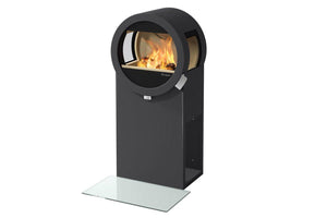 The Nordpeis ME Basic features the circular firebox placed on a Basic stand with side door base. Minimum clearances to combustibles 100mm rear, 700mm sides, 700mm above