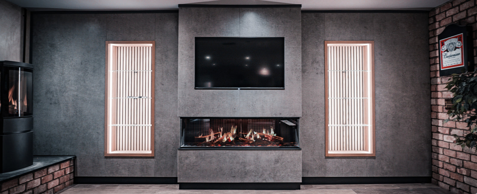 Explore a wide selection of media wall fires in our showroom near Newtownards, County Down. Our experts will help you find the ideal electric or gas media wall to transform your living space.